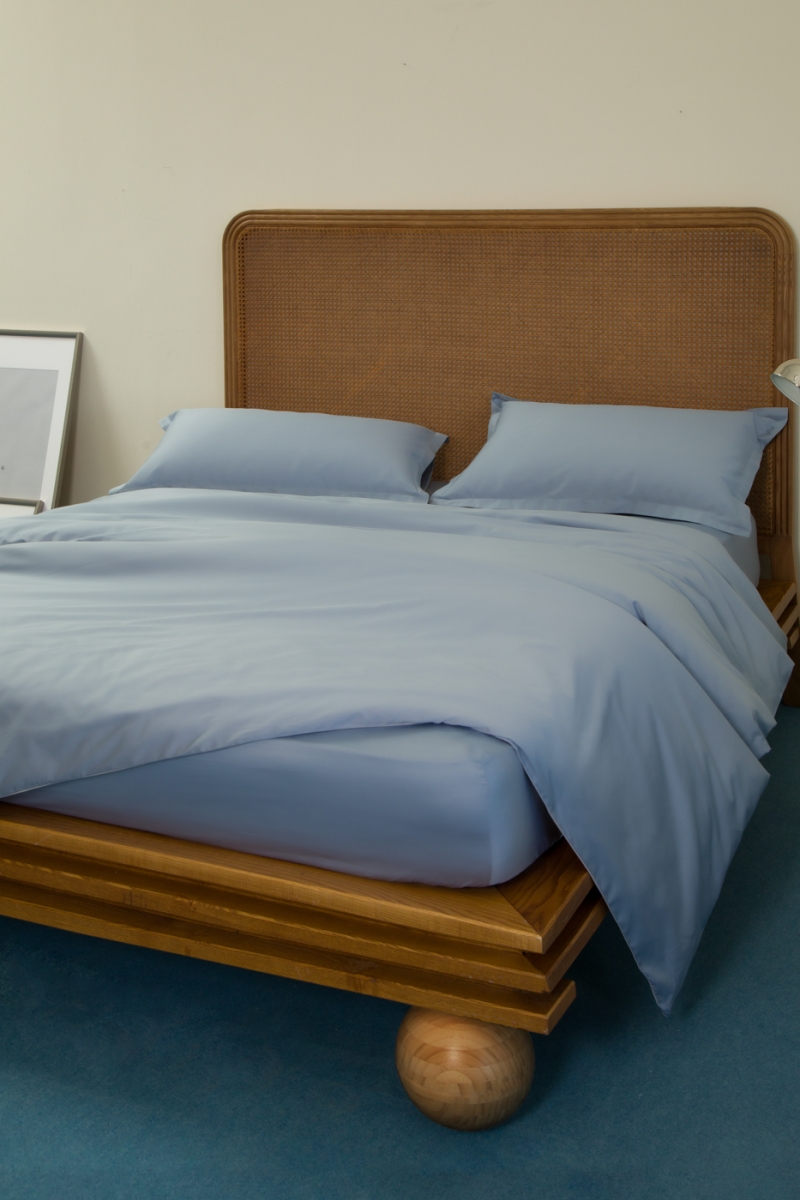 Completo  letto in puro raso cotone 300TC con ricamo Masaki, una raffinata geometria ricamata